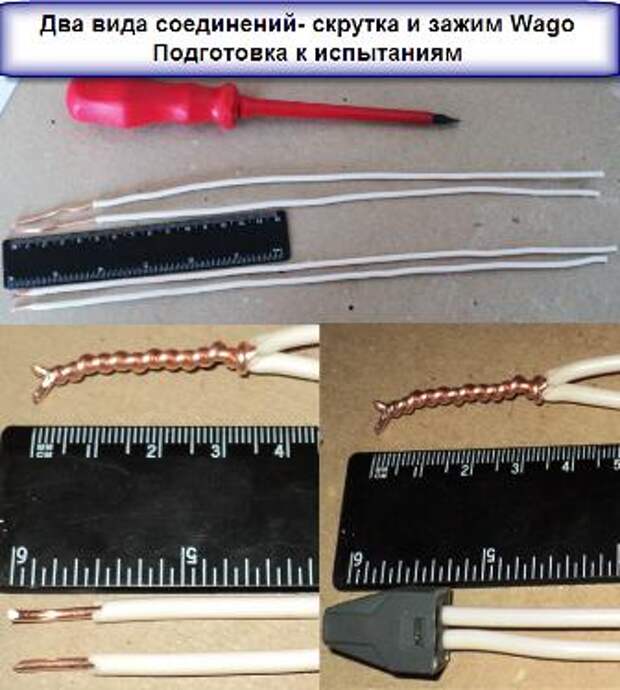 Значит надо включить через эти два соединения одинаковую нагрузку, причем с током больше допустимого и за одинаковое время при одной и той же температуре в помещении можно будет косвенно сделать выводы какое соединение проводов лучше - скрутка или зажим wago.