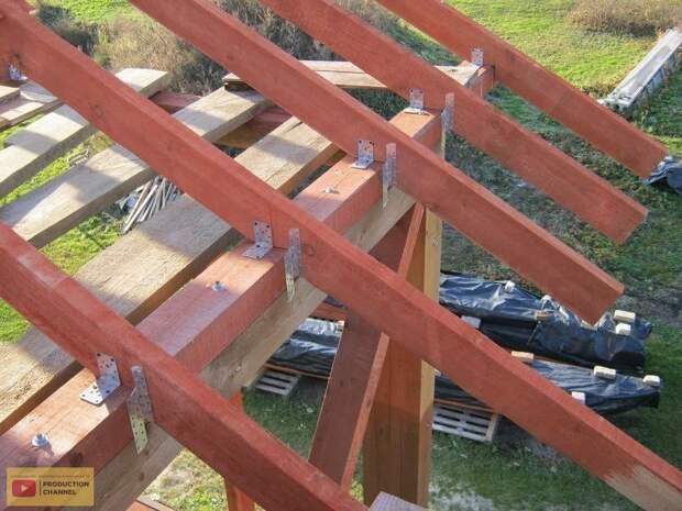 На углах следует добиться плотного прилегания брусьев друг к другу. Для достижения качественного результата брусья спиливают под углом 45?. Фиксируют крепление при помощи гвоздей.