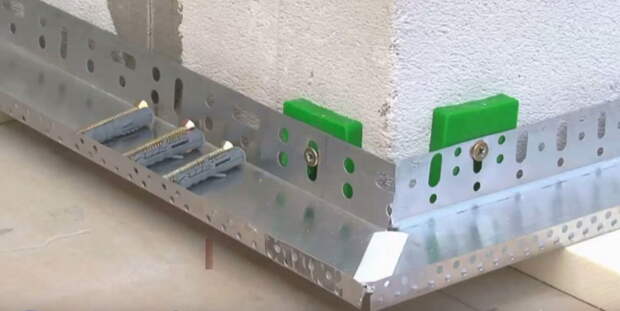 Стартовый профиль перфорированный Сталь толщиной не менее 1мм. Расстояние между отверстиями – 20см, диаметр – 2мм