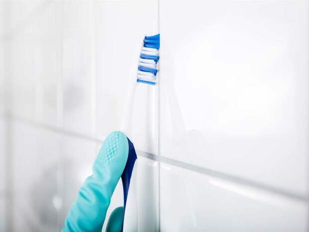 С помощью зубной щетки можно легко и быстро освежить вид затирки в швах между плитками в ванной и туалете.
